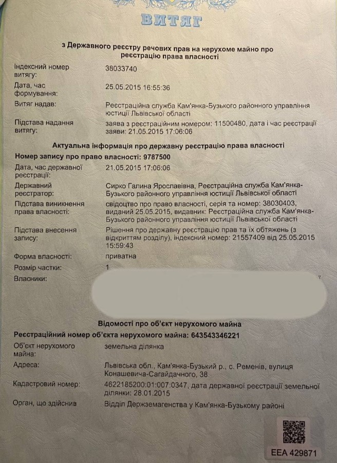 Перевірено в держ гео кадастрі