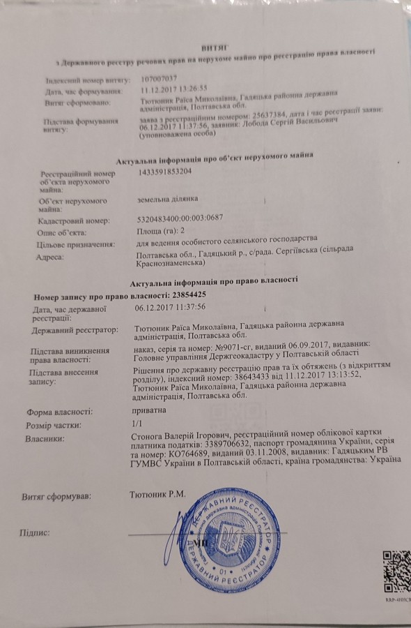 Перевірено в держ гео кадастрі