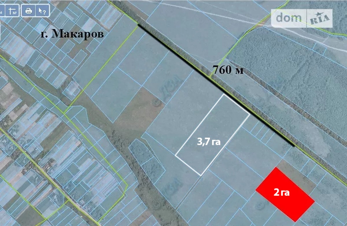 Видео участка - https://www.youtube.com/watch?v=xE10ooPfuu0 2 га прямокутної форми для ведення сільського господарства. Знаходиться на відстані 760 м від населеного пункту Макарів, 100 м від лісу та 100 м від лінії електропередач. Підїзна дорога грунтова. Ділянка вільна від будівель і рослинності (поодинокі молоді ялинки). Гарна транспортна і візуальна доступність. Розташована поблизу стратегічної і жвавої Житомирської траси Київ-ЧОП. Впродовж траси розташовані логістичні склади, заправки, готелі, ресторани, кафе. 2 км до центру м.Макарів. 800 м до господарчого магазину.Від межі Києва близько 30 км. Плюсом цієї ділянки є ліс, який знаходиться зовсім поряд і гарний відпочинок Вам гарантовано в любу пору року. При потребі допожу в зміні цільового призначення.