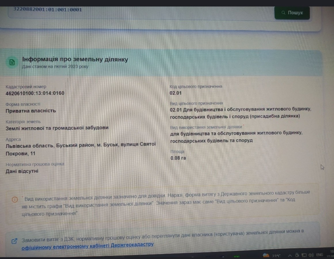 02.01 Для будівництва і обслуговування житлового будинку, господарських будівель і споруд (присадибна ділянка)