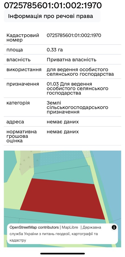 Перевірено в держ гео кадастрі