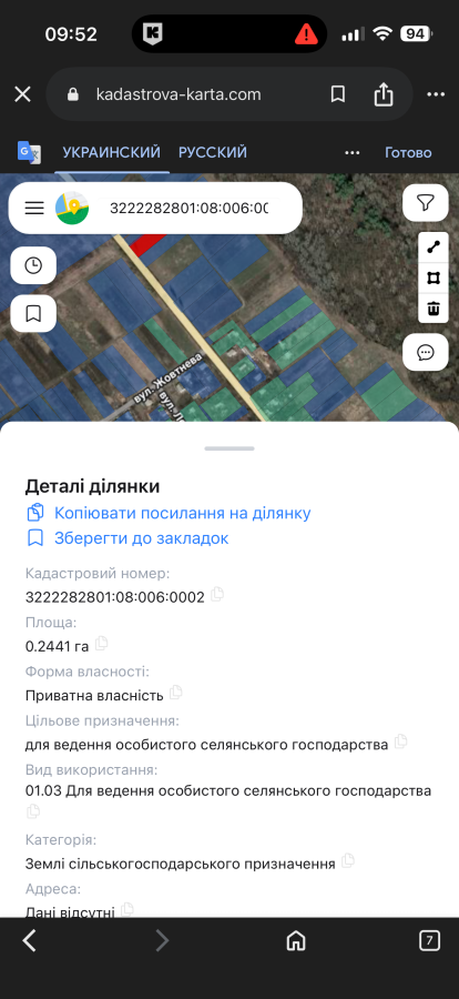 Перевірено в держ гео кадастрі